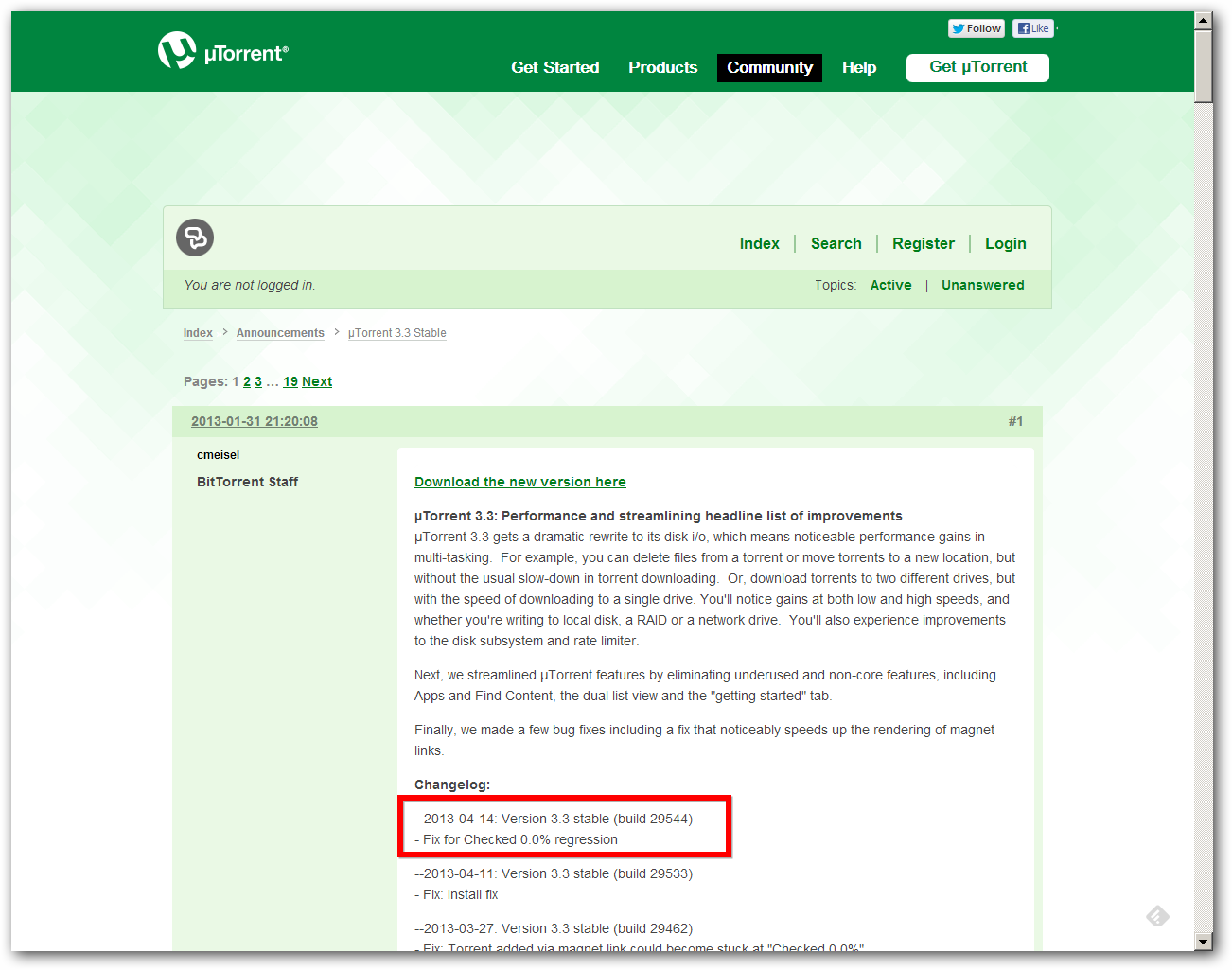 utorrent-update-3-3-29544 Wednesday, 2013.04.17 J.D. H. Leave a comment uTorrent changelog Previous Return to Upgrade to uTorrent 3.3 Stable? [yes]