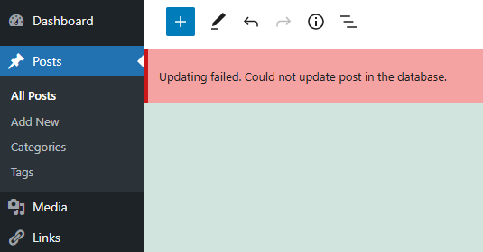 “Publishing failed. Could not update post in the database.”