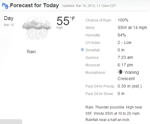 Rainy forecast Sunday, 2013.03.10 J.D. H. Leave a comment Return to Daily Exede speedtest.net results