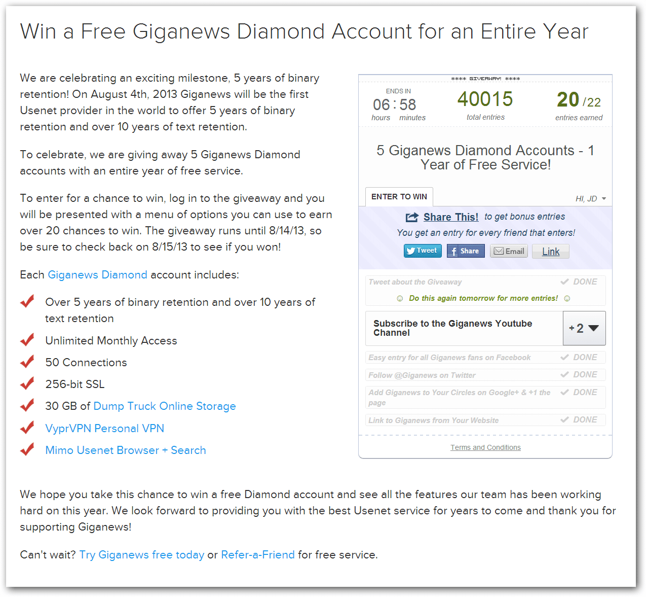 Giganews Usenet Giveaway Contest Wednesday, 2013.08.14 J.D. H. Leave a comment Return to Giganews contest