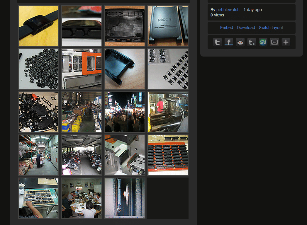 pebble-watch-screenshot-manufacturing Saturday, 2012.09.22 J.D. H. Leave a comment Screenshot of Pebble’s imgur gallery showing manufacturing photos Top Search Terms:pebble watch (2)pebble watch how to grab screenshots (1) Return to Oodles of new Pebble watch manufacturing photos