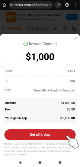Temu $1,000 Reward Claimed Screen… Is It Legit?