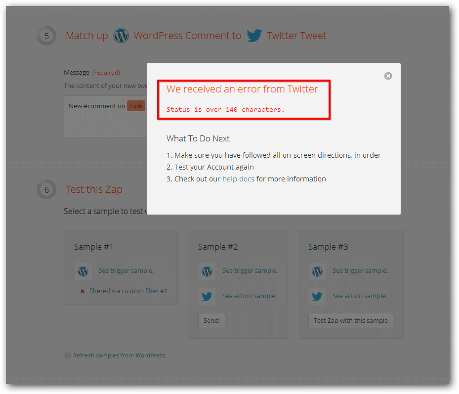 zapier-twitter-error-over-140-characters Sunday, 2014.02.09 J.D. H. Leave a comment Looking forward to getting this fixed Top Search Terms:zapier status is over 140 characters. (1) Return to Twitter post upon new WordPress comment [Zapier]
