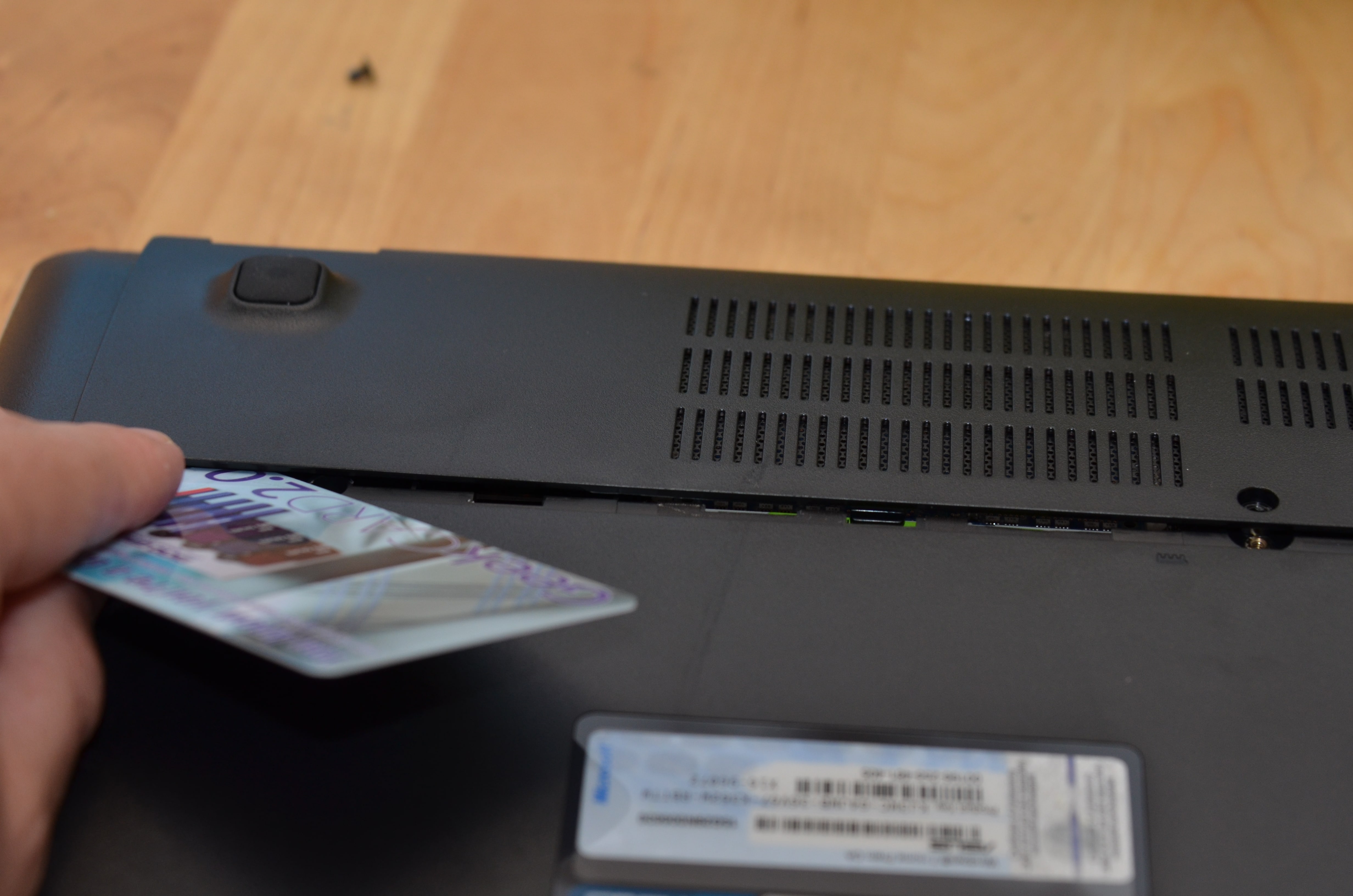 Using a card to help remove the access panel (2)